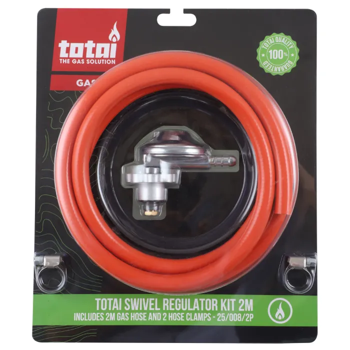 Totai Swivel Gas Regulator With Hose & Clamps 2m